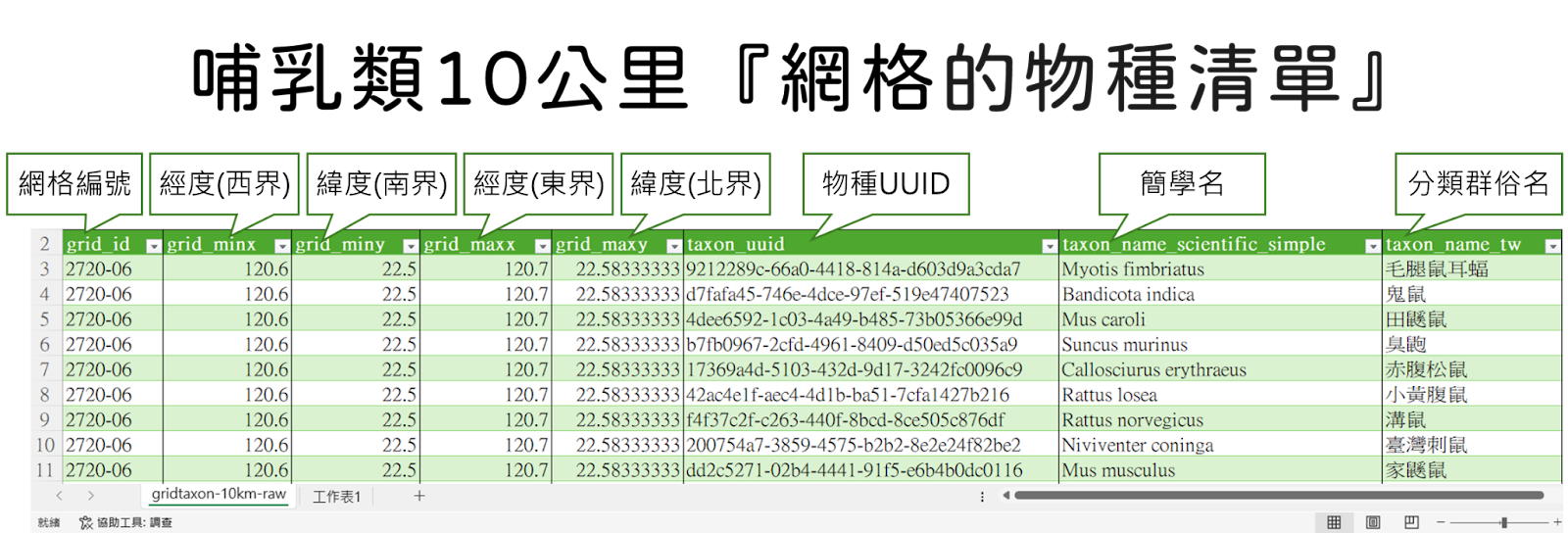 TBN的空間分頁可以下載並取得網格內的物種數,那如果想要了解所有網格裡的物種清單呢?